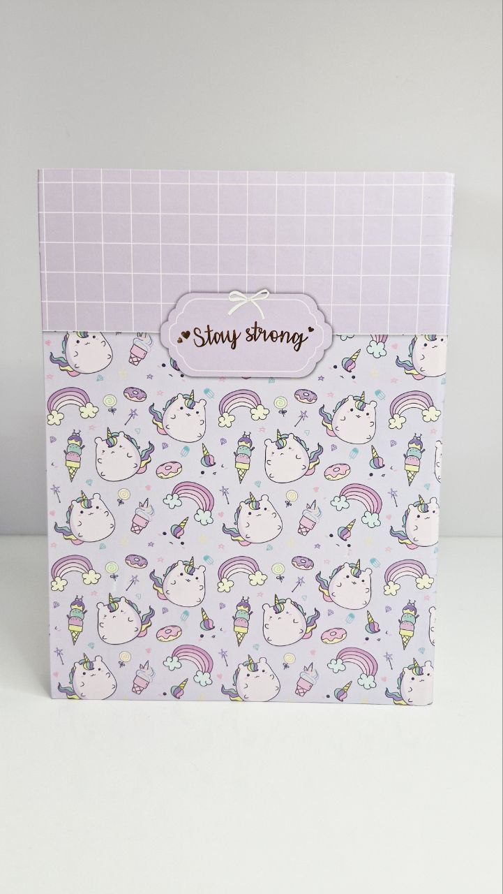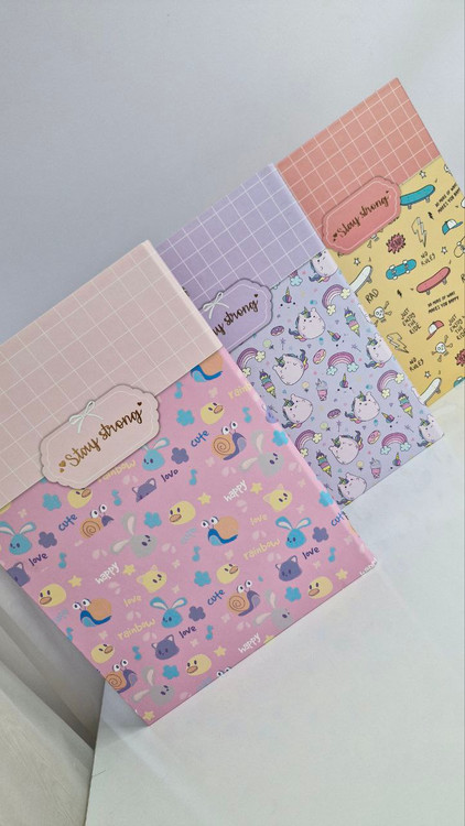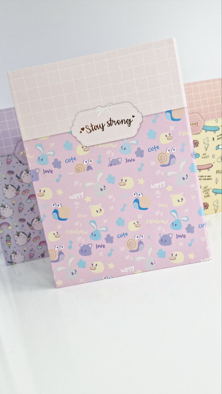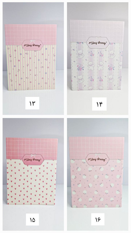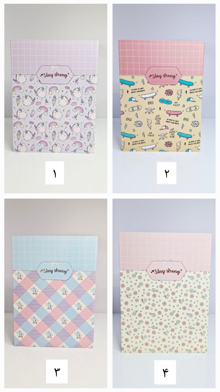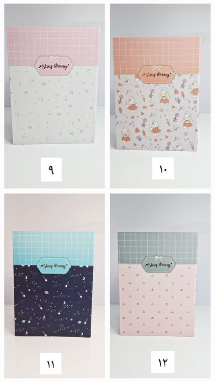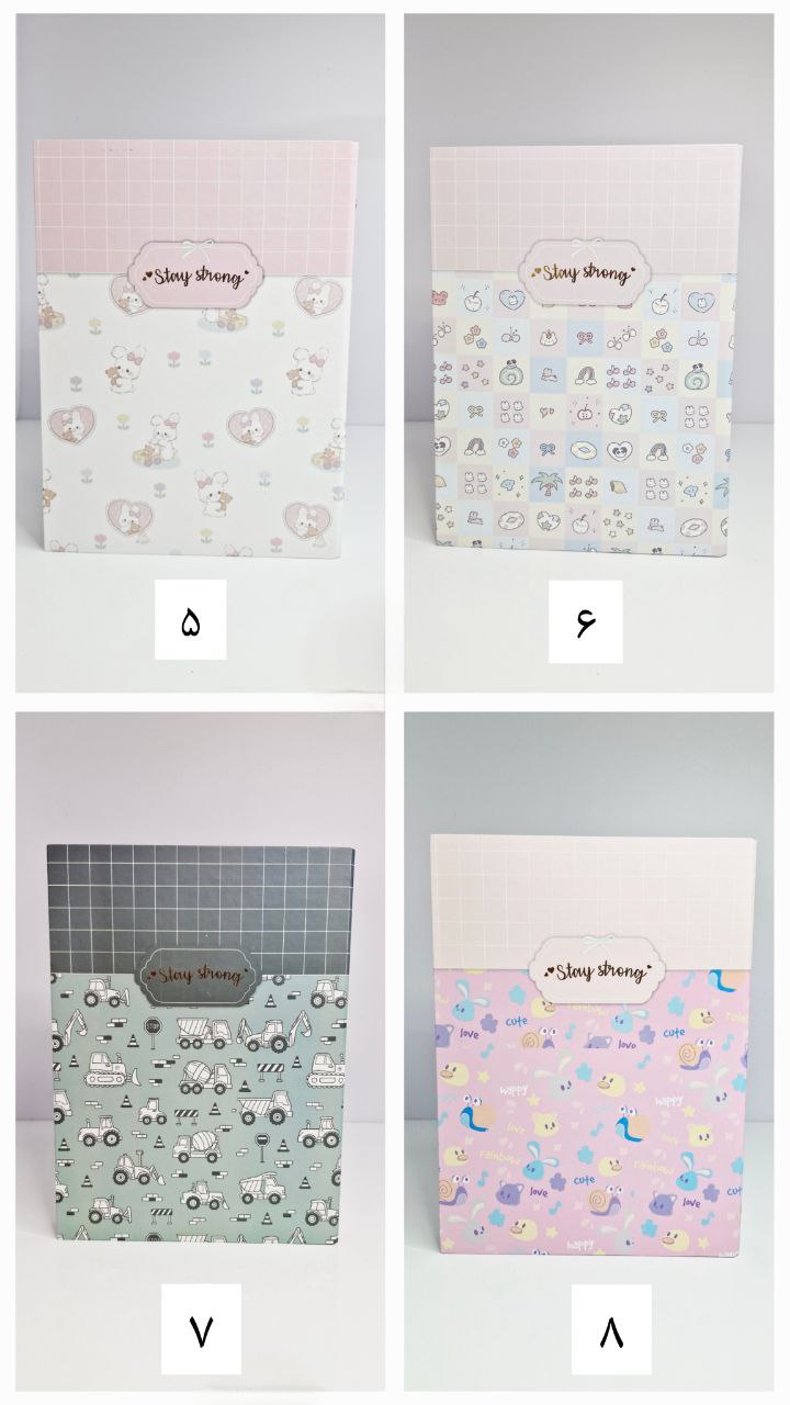 هر کلاسور با تم انگیزشی "Stay Strong" طراحی شده و پر از المانهای کیوت و دخترونه/پسرونه! از یونیکورنهای رنگارنگ و بستنیهای خوشمزه گرفته تا اسکیتبوردهای هیجانی، خرگوشهای ناز، ماشینهای ساختمانی قدرتمند، ستارههای درخشان، گلهای ظریف و حتی تمهای دریایی و فضایی – بیش از ۱۹ طرح منحصربهفرد داریم که هر کدوم یه داستان شاد دارن. رنگهای پاستلی ملایم (صورتی، آبی، بنفش، کرم و...) باعث میشه کلاسورتون نه تنها کاربردی، بلکه یه قطعه هنری روی میزتون بشه!